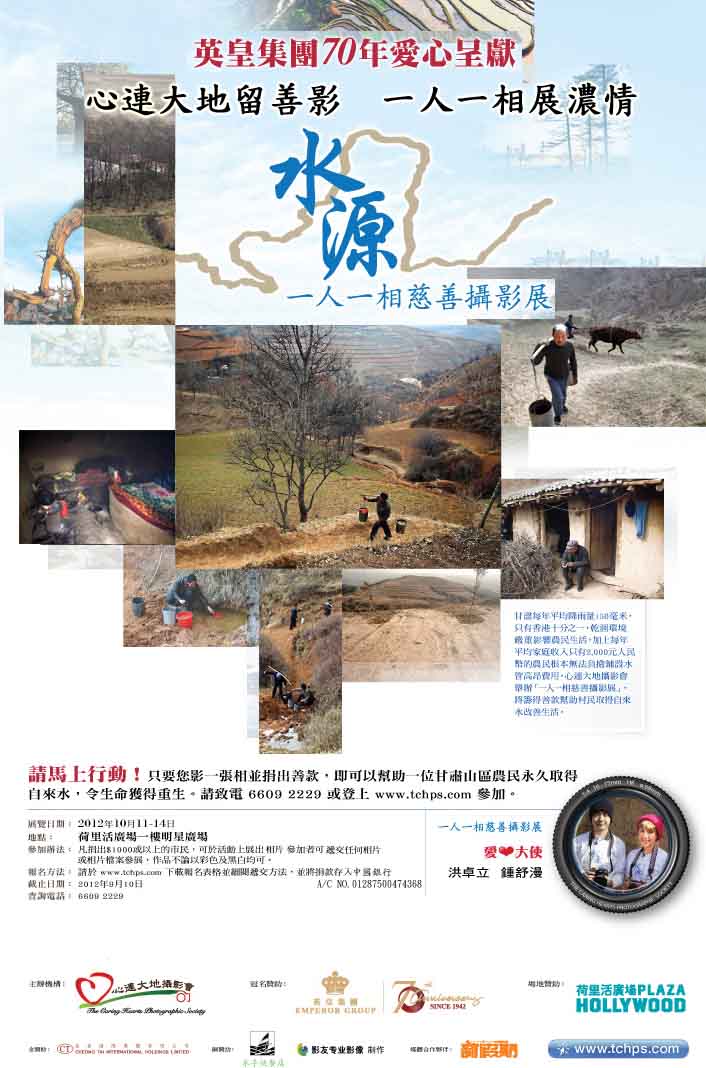 「水源」一人一相慈善攝影展暨中國甘肅省渭源縣山區自來水工程計劃,乃由心連大地攝影會主辦、英皇集團冠名贊助;目的為